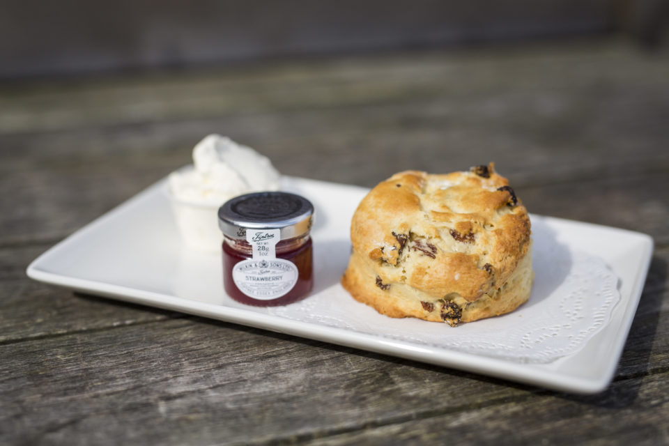 A fruit scone, jam and clotted cream at Dunham Massey, Cheshire. ©National Trust Images/Rob Stothard