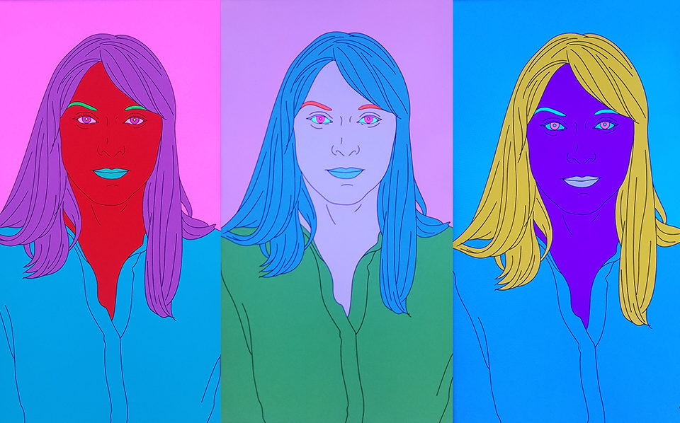The exhibit included a digital portrait of Laura, Lady Burlington which cycled through various color palettes. Above are three of the color palettes we saw.