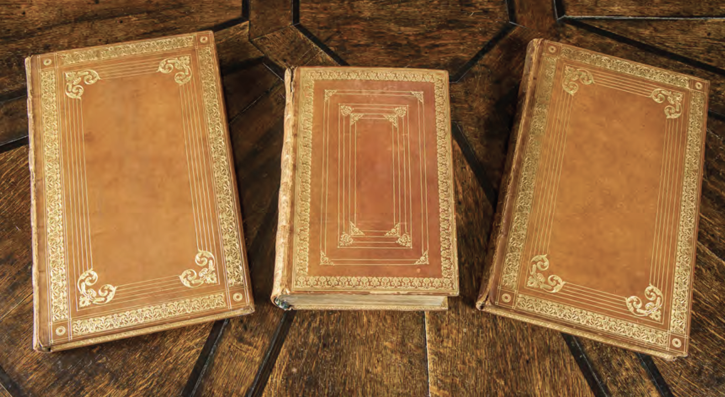 Fig. 2: 19th-century bindings: Greek poets (left and right) and New Testament (centre), ©National Trust Images/Paul Bailey