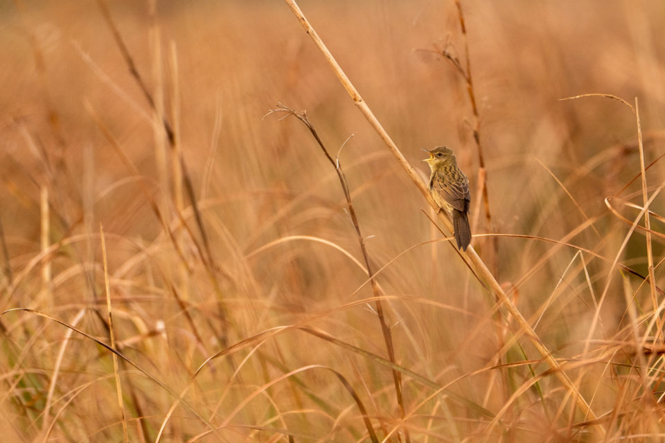 Grasshopper warbler in the reeds at Wicken Fen National Nature Reserve, Cambridgeshire