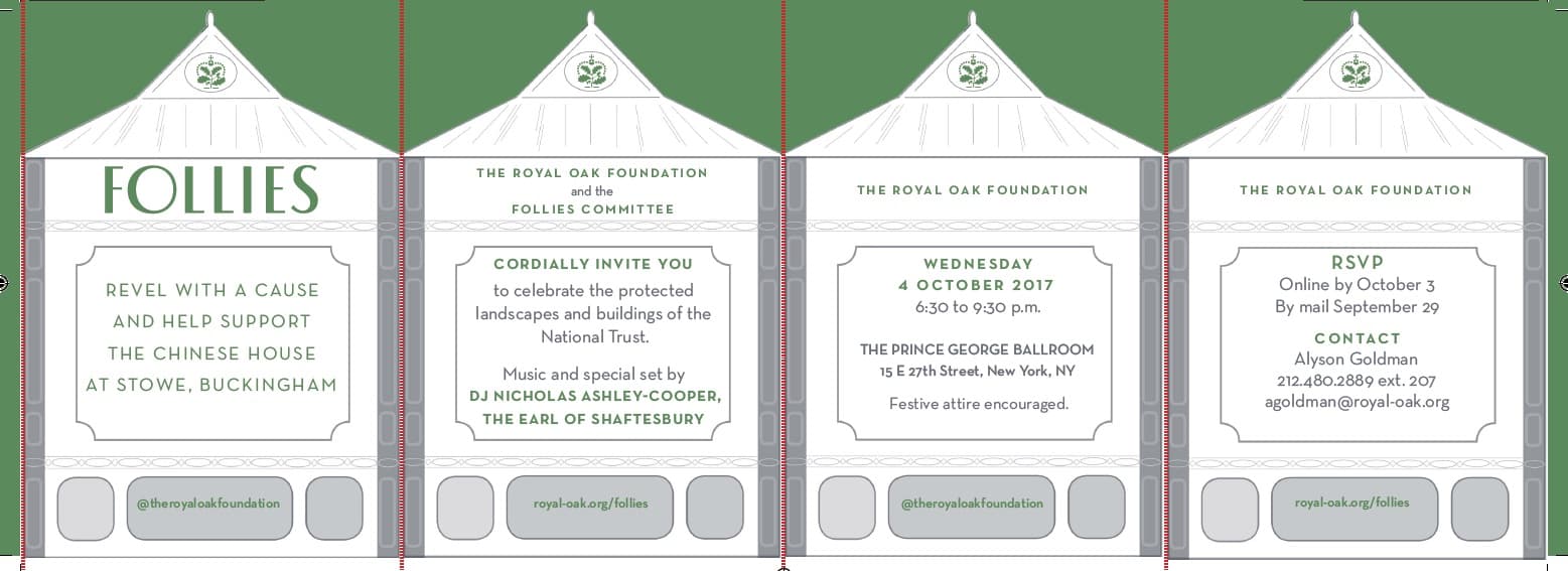 The Royal Oak Foundation presented its 2nd Annual Follies event on October 4th, 2017, at the Prince George Ballroom. Follies celebrated the protected landscapes of the National Trust and their architectural follies found throughout the British countryside.