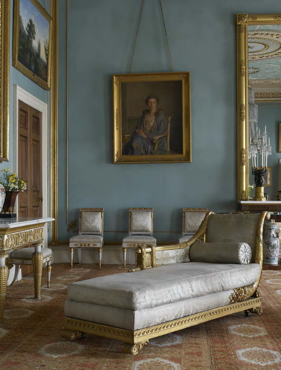 The Drawing Room at Attingham Park, Shropshire, showing several pieces of giltwood and whitepainted Neo-classical Italian furniture, traditionally but erroneously associated with Caroline Murat. © National Trust Images/Paul Barker